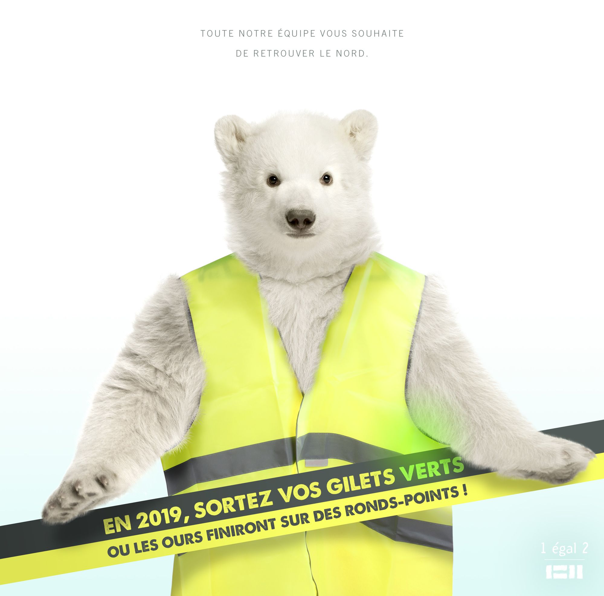 Vœux 2019 de l'agence 1=2 Sortez vos gilets verts ! Nous vous souhaitons une année de transition, pleine de fraîcheur et de bonnes surprises.