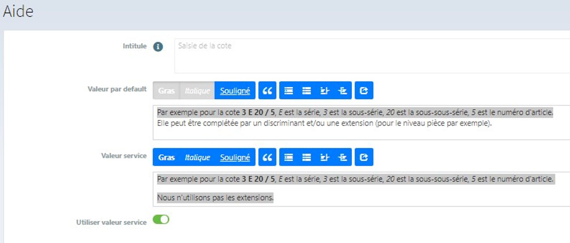 - le paramétrage des messages d’aide suivant les processus de travail du service d'archives,