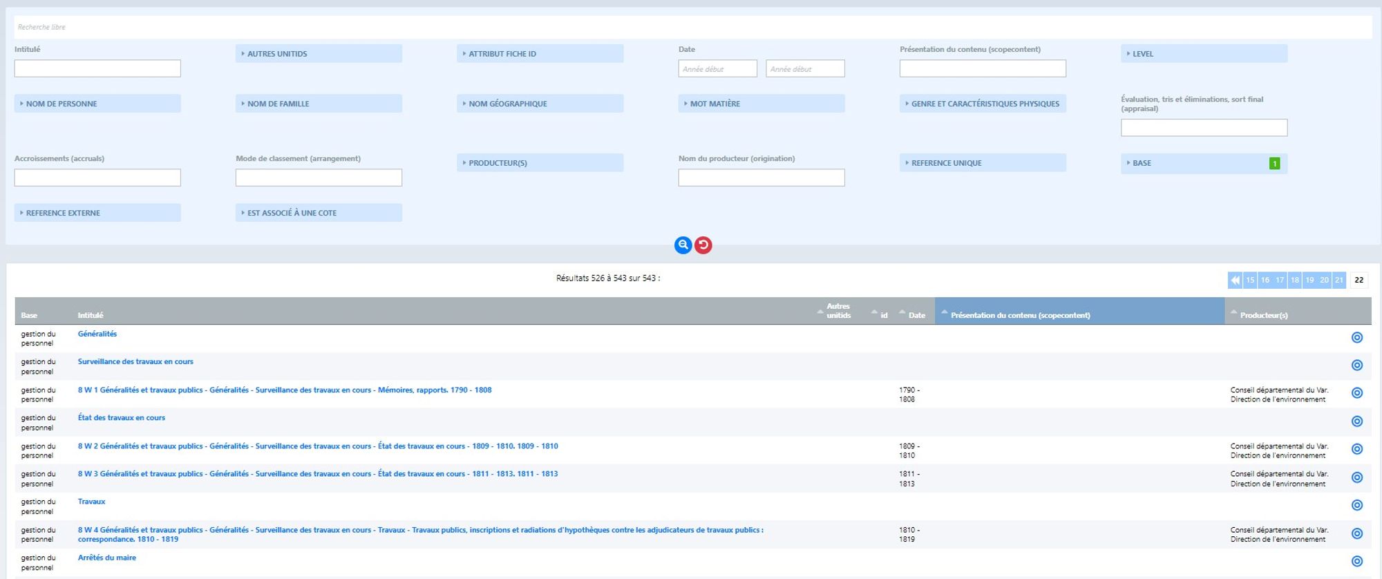 Exemple de recherche dans les fiches ISAD(G) des instruments de recherche :