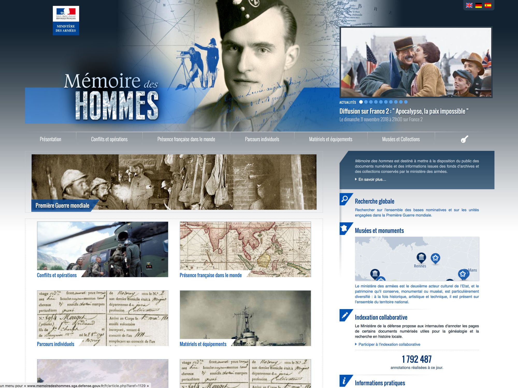 Mémoire des Hommes est accessible en 4 langues.