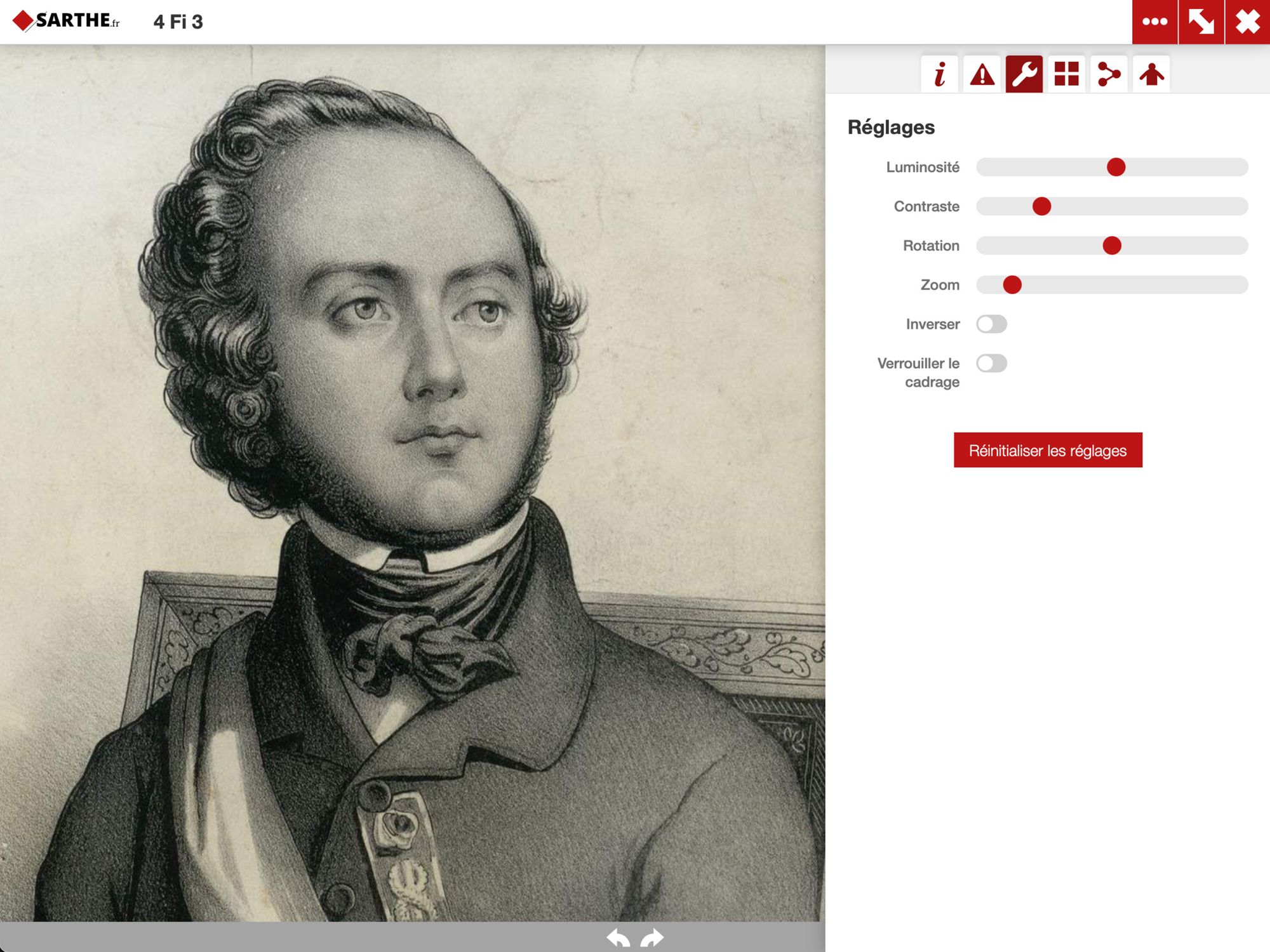 Outils : contraste, luminosité, négatif, rotation, zoom…