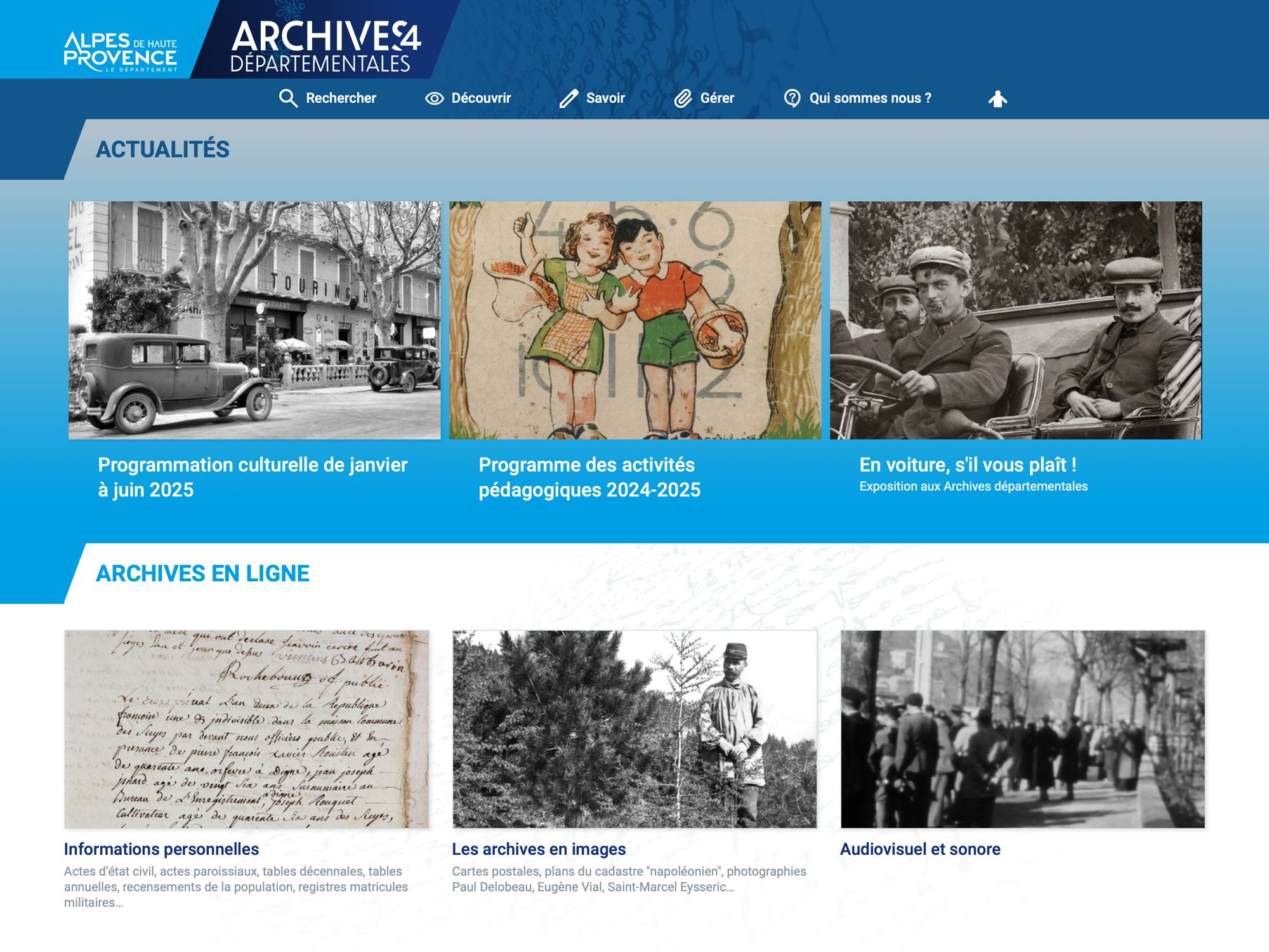 Les Archives départementales conservent depuis la Révolution française les documents administratifs et privés liés à l’histoire des Alpes de Haute-Provence. Ce fonds est valorisé au fil d’expositions, conférences, lectures et publications, avec notamment :