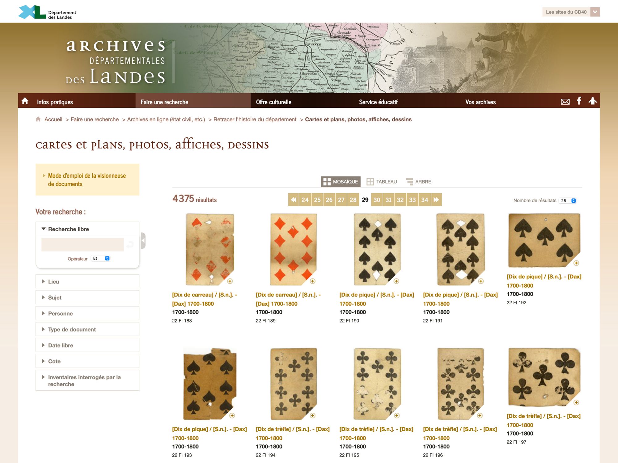 Le site ressources en ligne des Archives départementales des Landes propose parmi ses fonds :