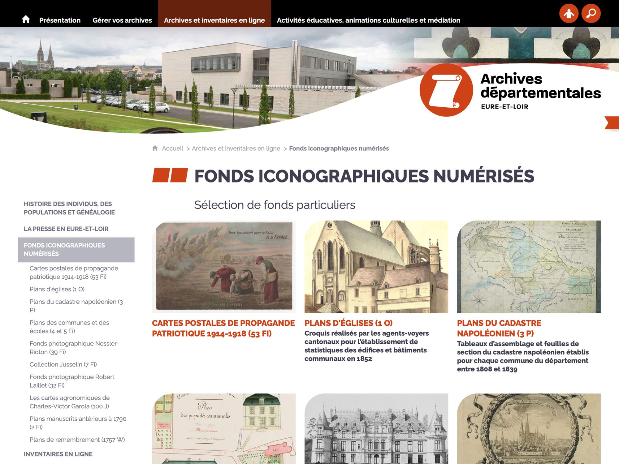 Nous avons eu de bons retours sur le fonds des cartes postales de propagande patriotique 14-18. Il a été beaucoup plus consulté que le fonds photographique Houvet (cathédrale de Chartres) qui a lui aussi été passé en mode « facettes ».