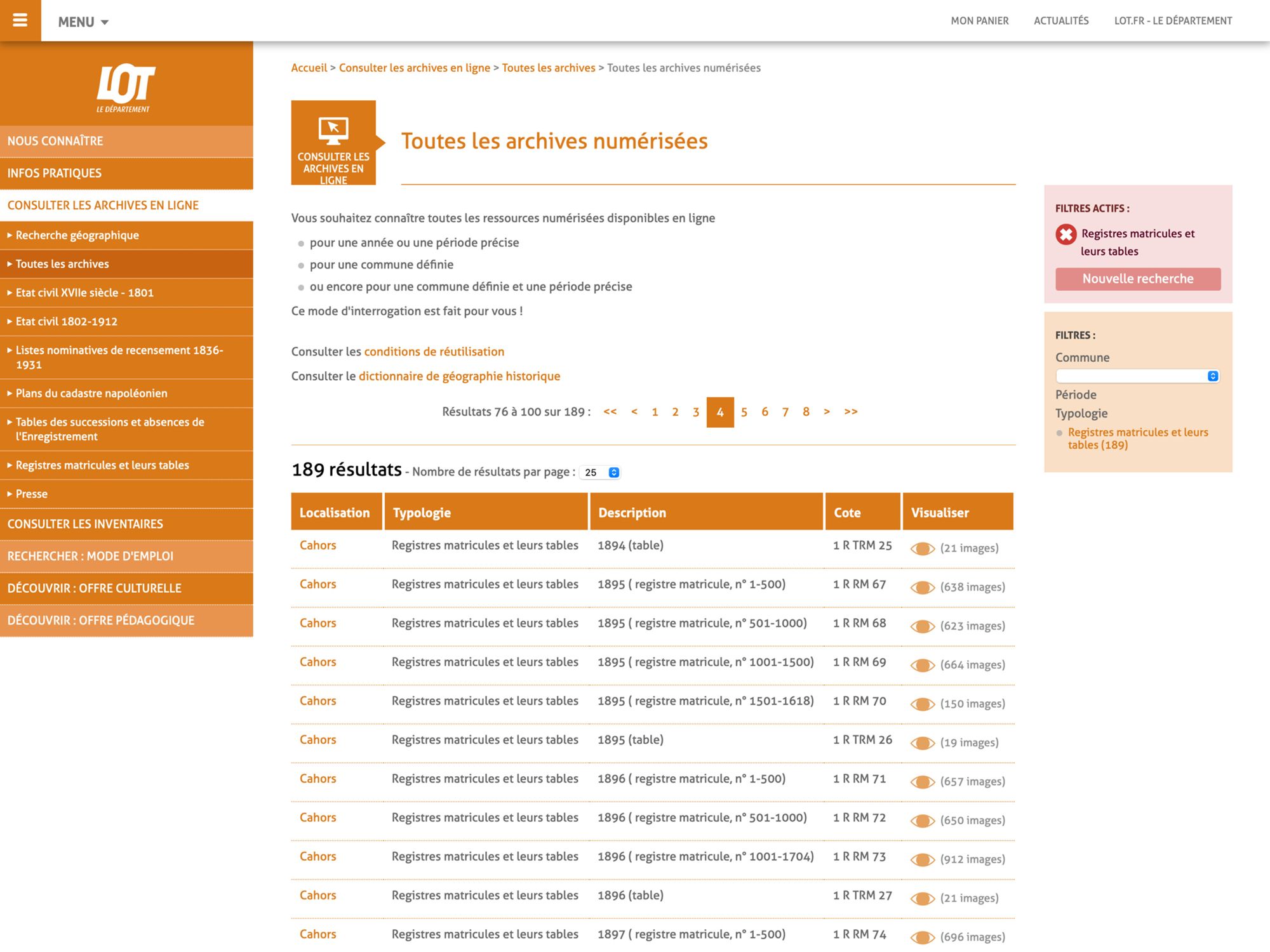 Les Archives départementales du Lot proposent à ce jour 1 200 000 images en ligne, réparties sur cinq fonds sériels :