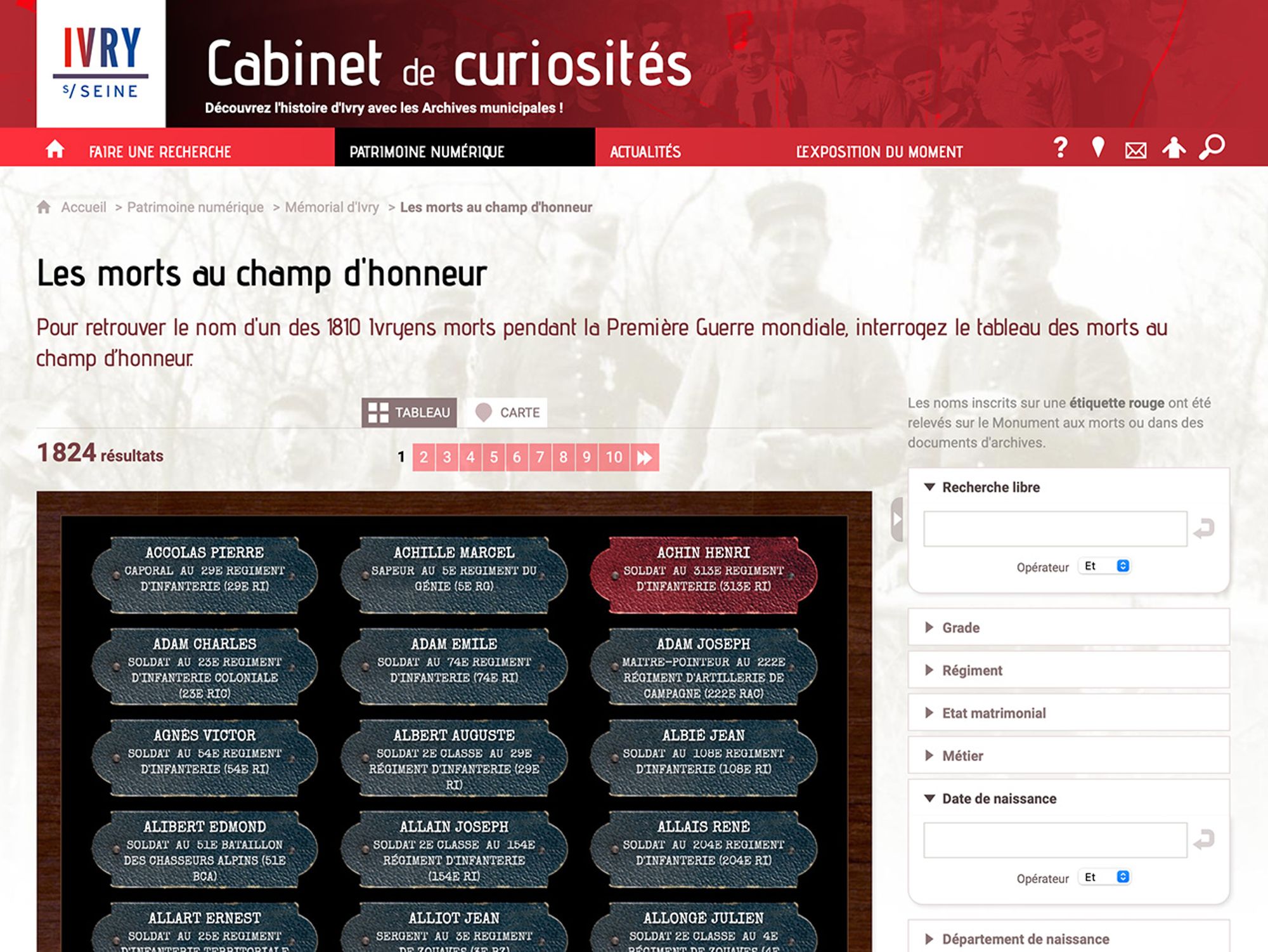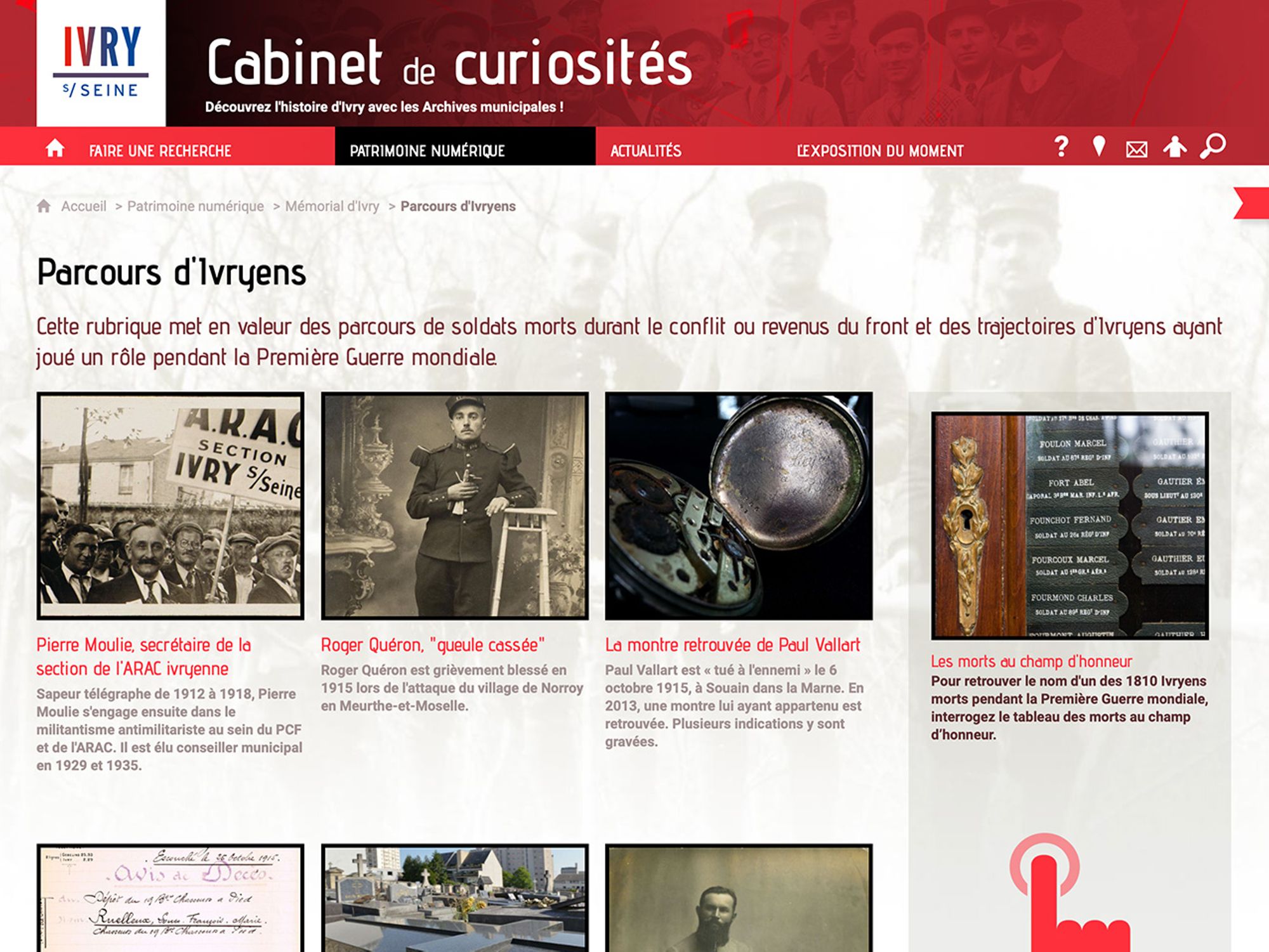 À l’occasion des cérémonies du 11 novembre 2014, les archives municipales ont lancé un site Internet collaboratif afin de retracer le parcours des 1 800 Poilus ivryens morts lors de la Première Guerre mondiale.