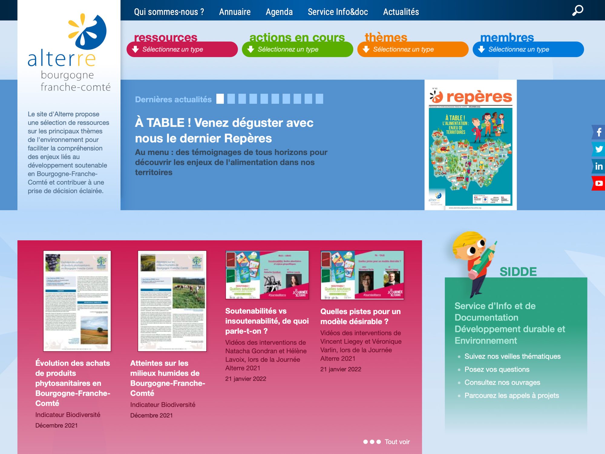 Le site d'Alterre Bourgogne Franche Comté propose une sélection de ressources sur les principaux thèmes de l'environnement pour faciliter la compréhension des enjeux liés au développement soutenable en Bourgogne et contribuer à une prise de décision éclairée.