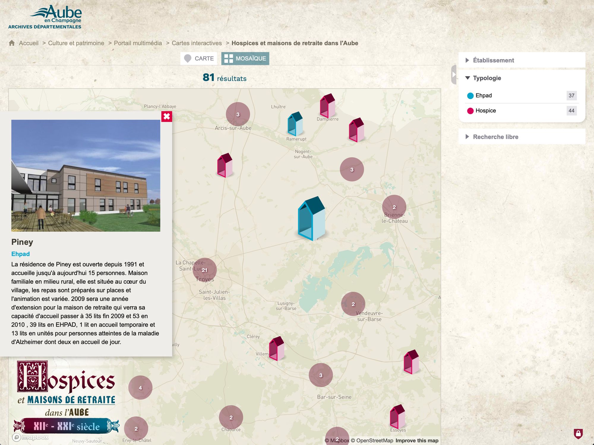 Cette carte interactive localise les hospices aujourd'hui disparus mais aussi les maisons de retraite actuelles dans l'Aube.