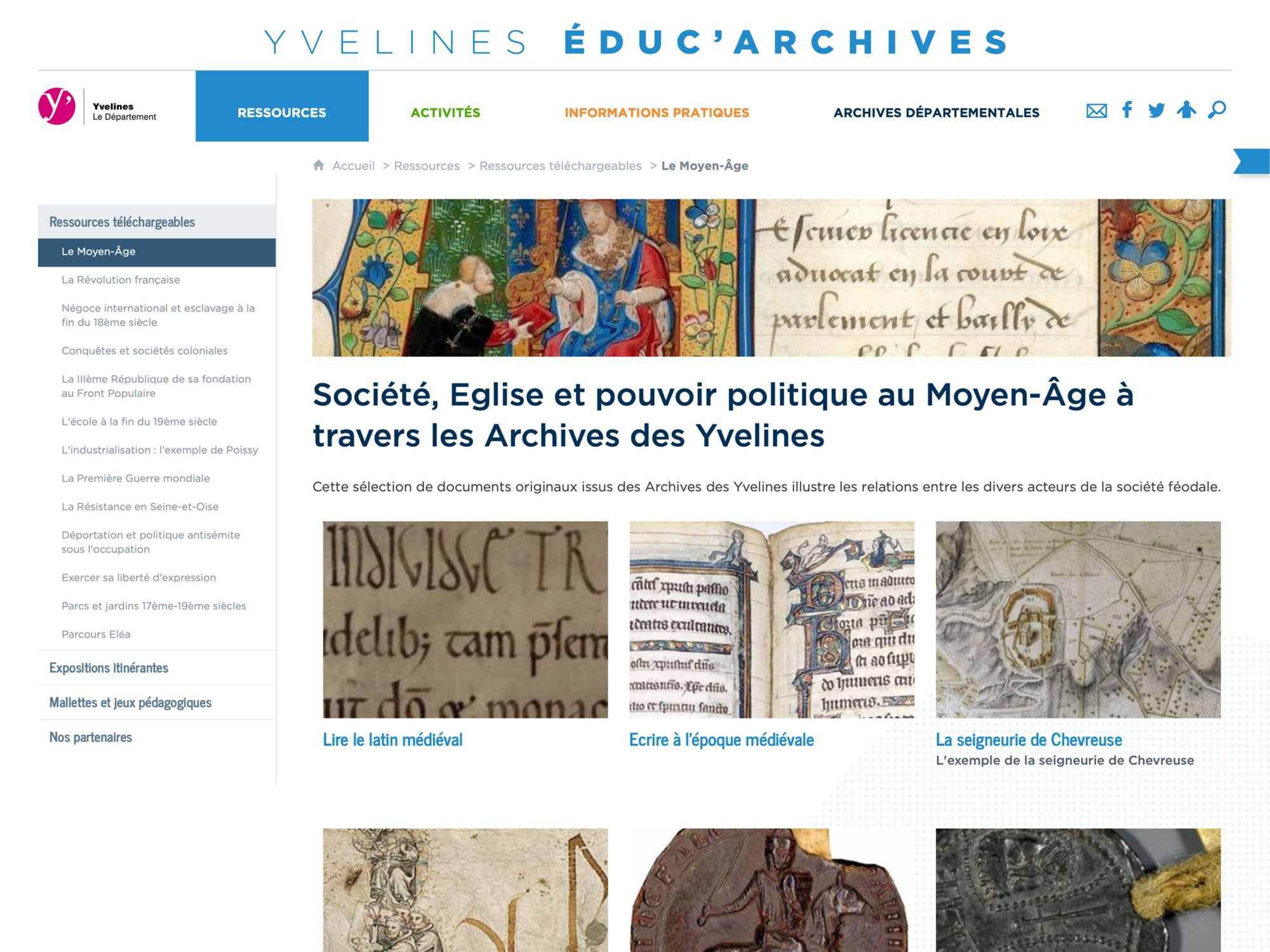 Le site pédagogique des Archives départementales des Yvelines.