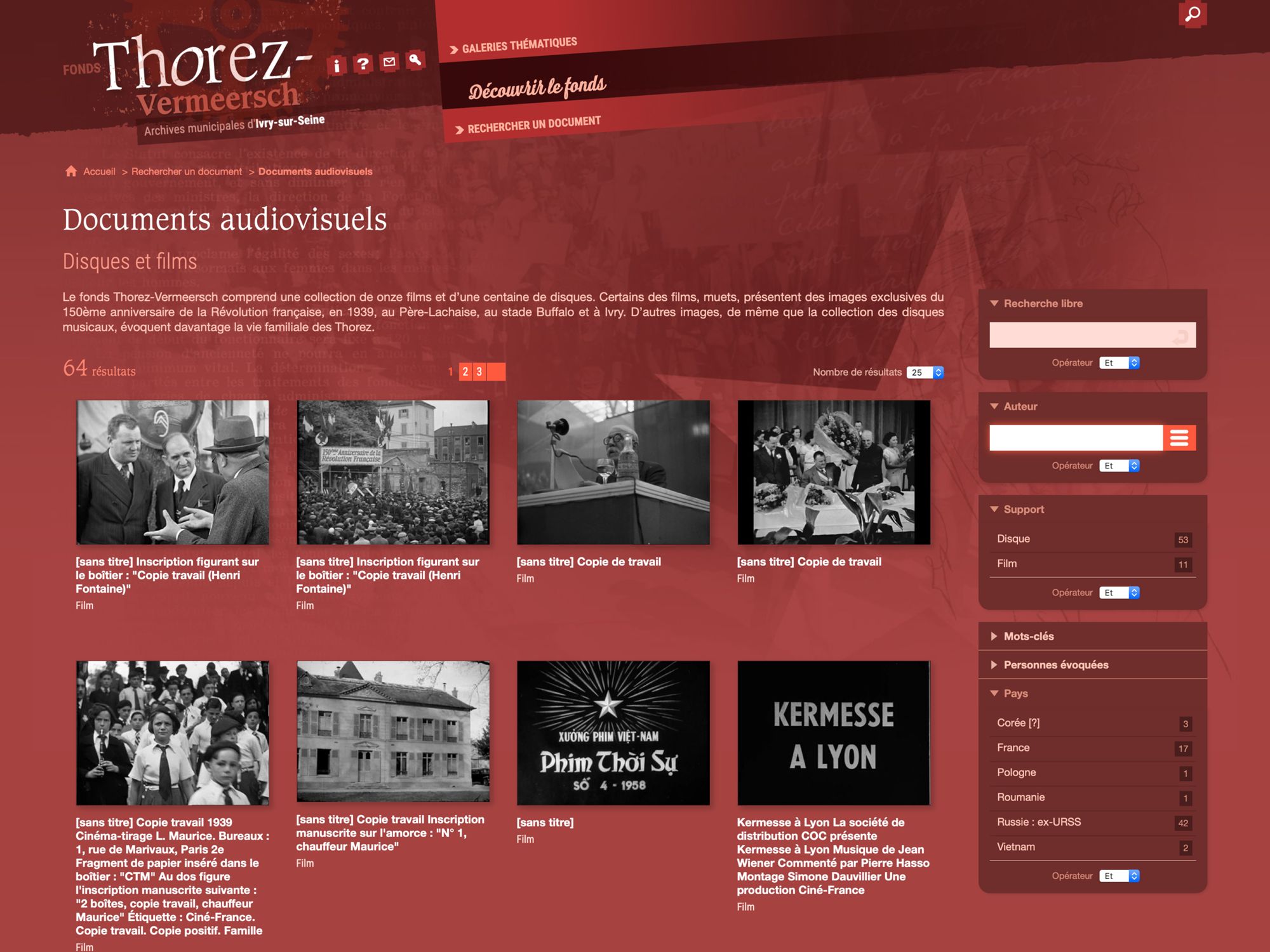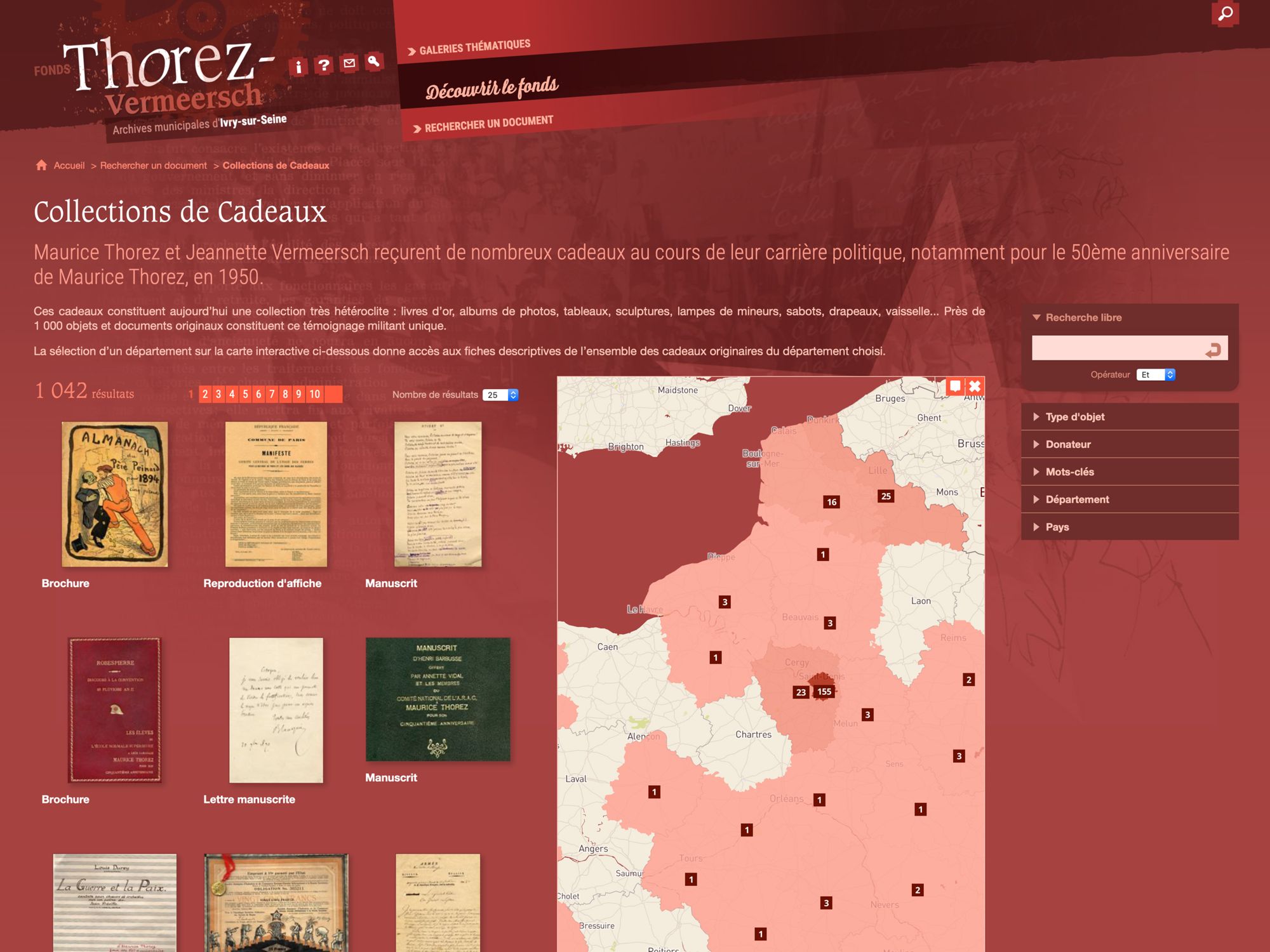 Des milliers de documents sont accessibles grâce aux différents modules de recherche, expositions virtuelles, galeries thématiques…