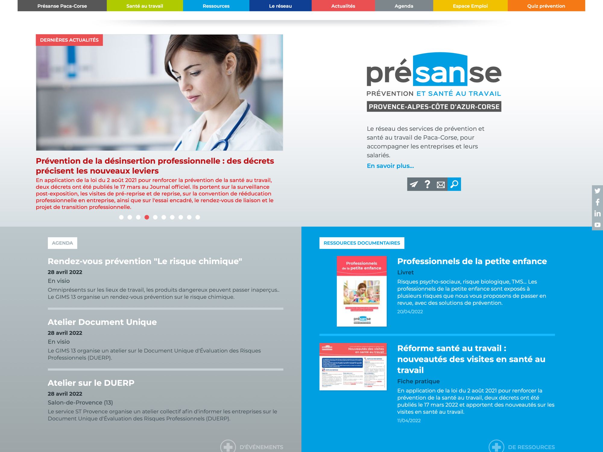 La plateforme Présanse est un pôle d’expertise et d’information, un site Internet accessible à tous, centré sur le métier de la Santé au Travail.