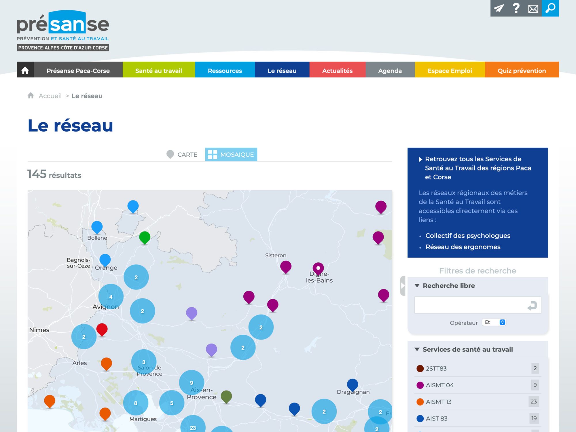 Il recense les différents acteurs de la santé au Travail en Provence-Alpes-Côte d'Azur et Corse, leurs ressources documentaires, les conventions et partenariats ainsi que les différents groupes de travail.