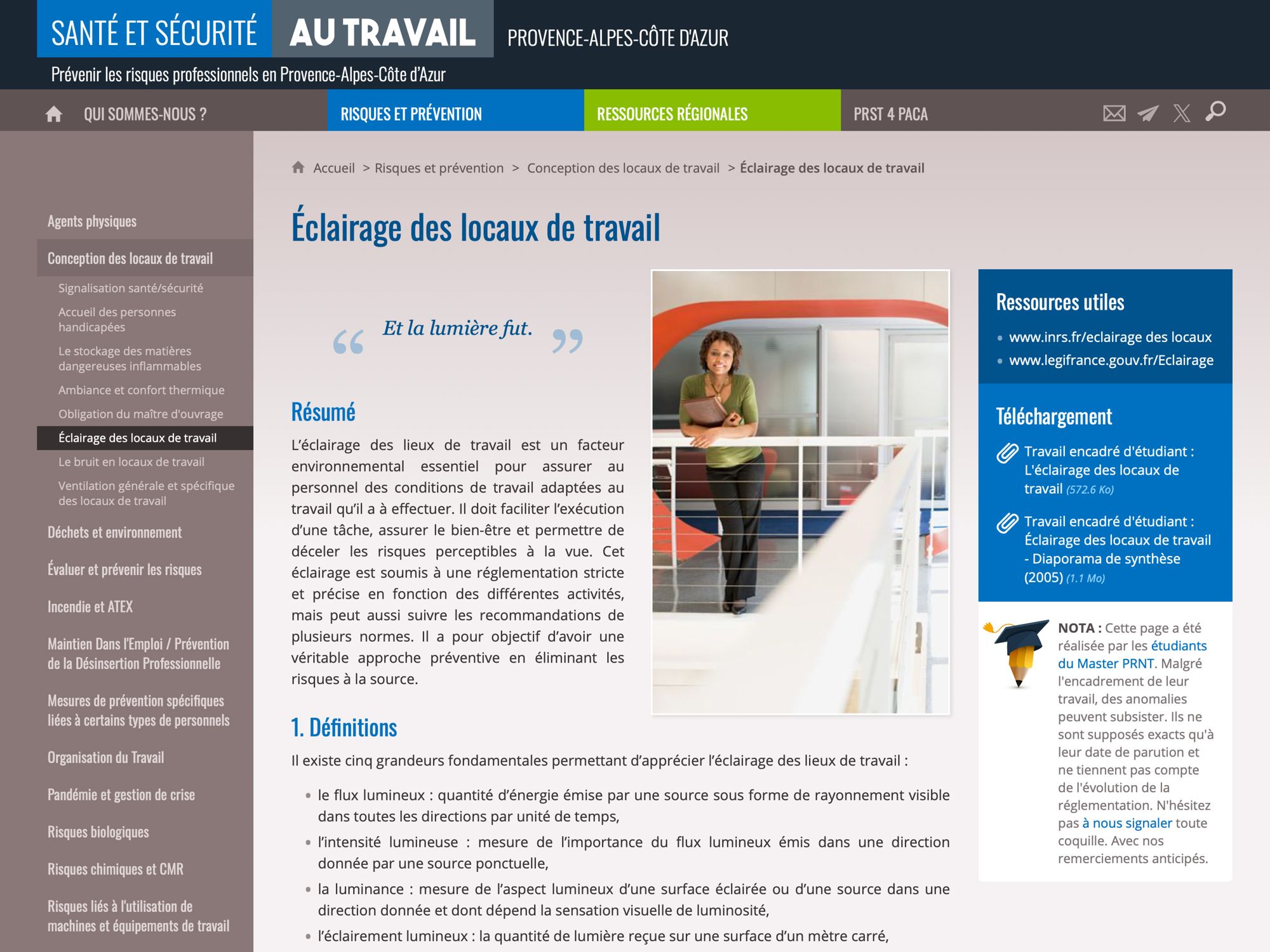 Le projet de développement du site Internet Santé au Travail en région PACA / Prévention des Risques Professionnels a été déposé dans le cadre du Contrat de plan État-région par le DESS Prévention des Risques et Nuisances Technologiques de l'Université de la Méditerranée.