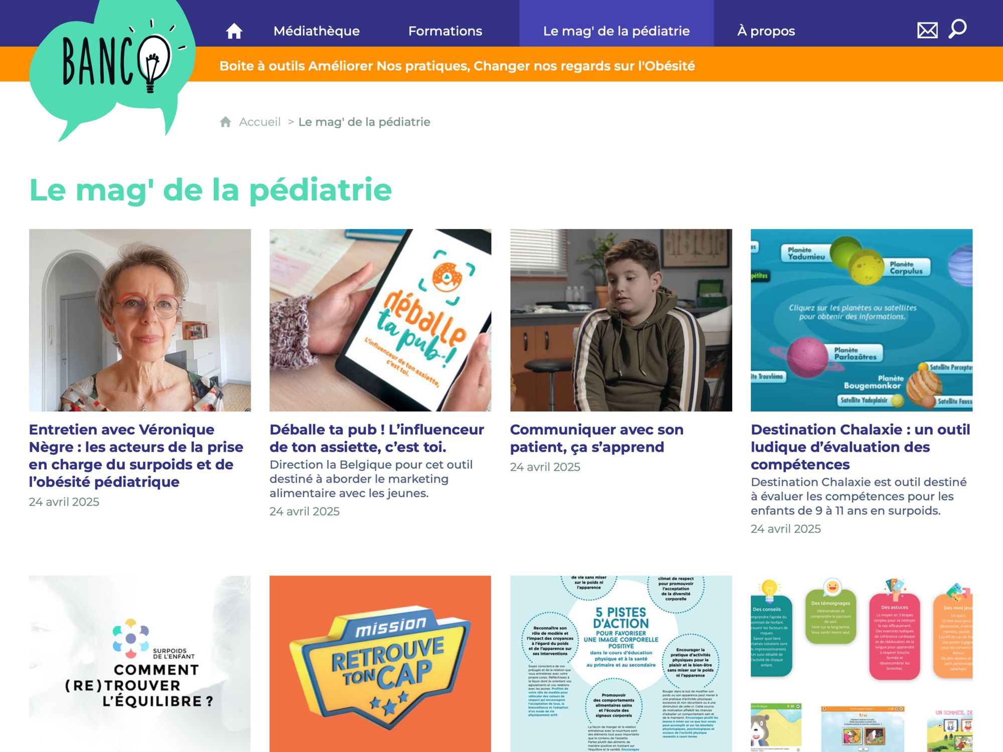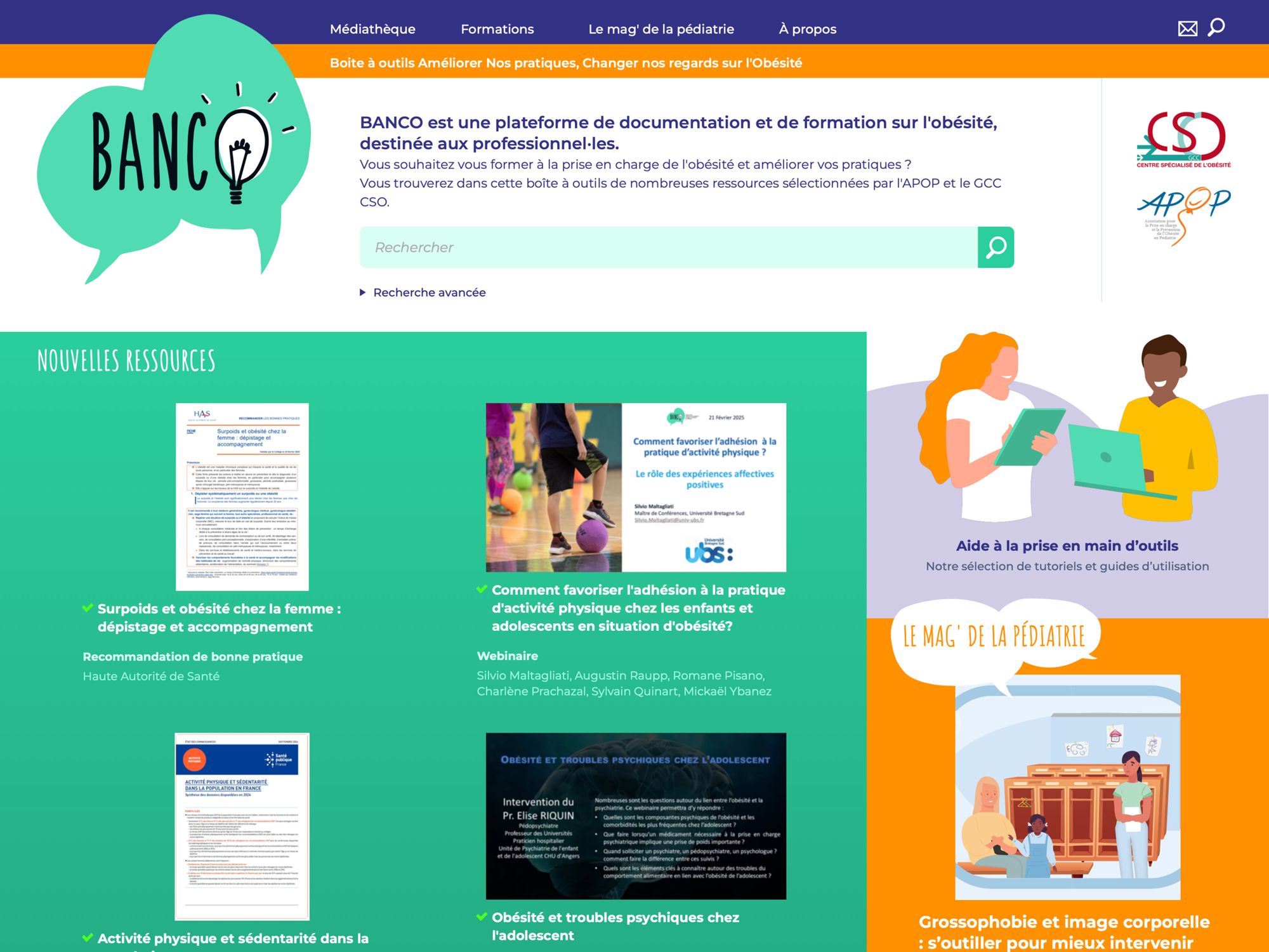 Vous trouverez sur cette plateforme des cours en ligne, des ressources et des outils pour votre pratique. Elle est dédiée à la prise en charge du surpoids et de l’obésité : dépistage, complications médicales, prise en charge diététique, activité physique adaptée, psychologie, parentalité, …