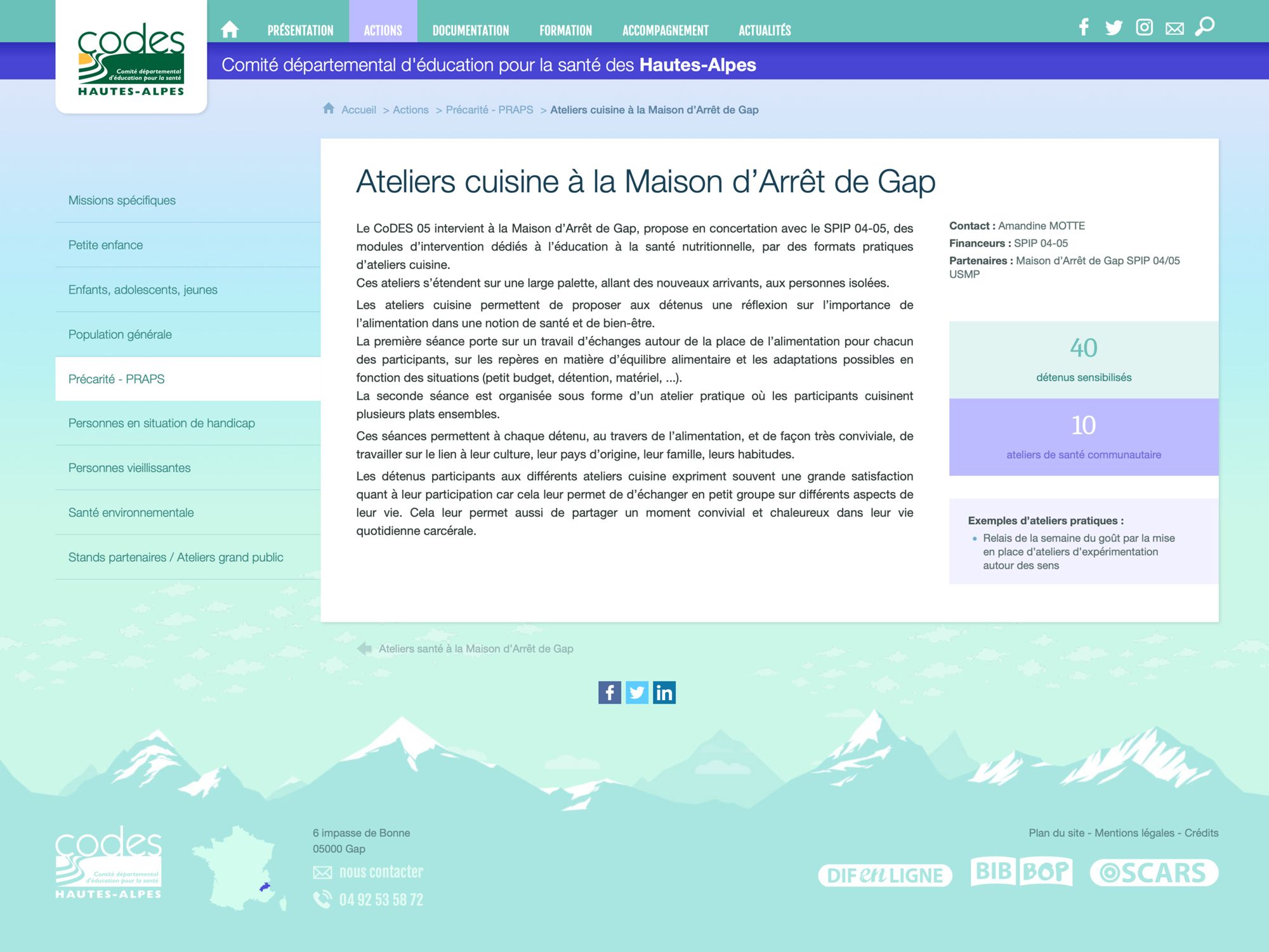 Association loi 1901, créée en 1990, le CoDES 05 fait partie du réseau régional d’éducation pour la santé constitué par le CRES PACA et les six comités départementaux d’éducation pour la santé - CoDES.
