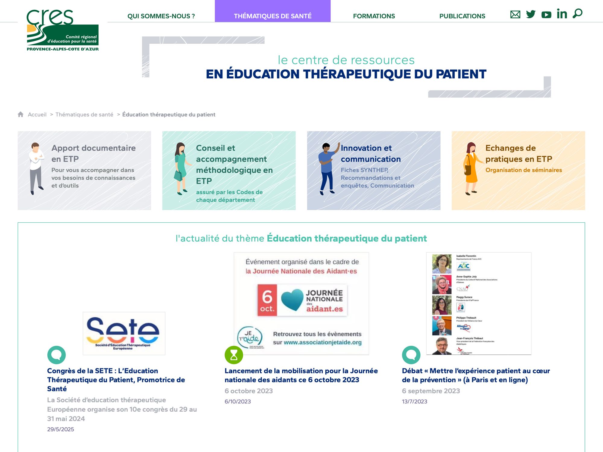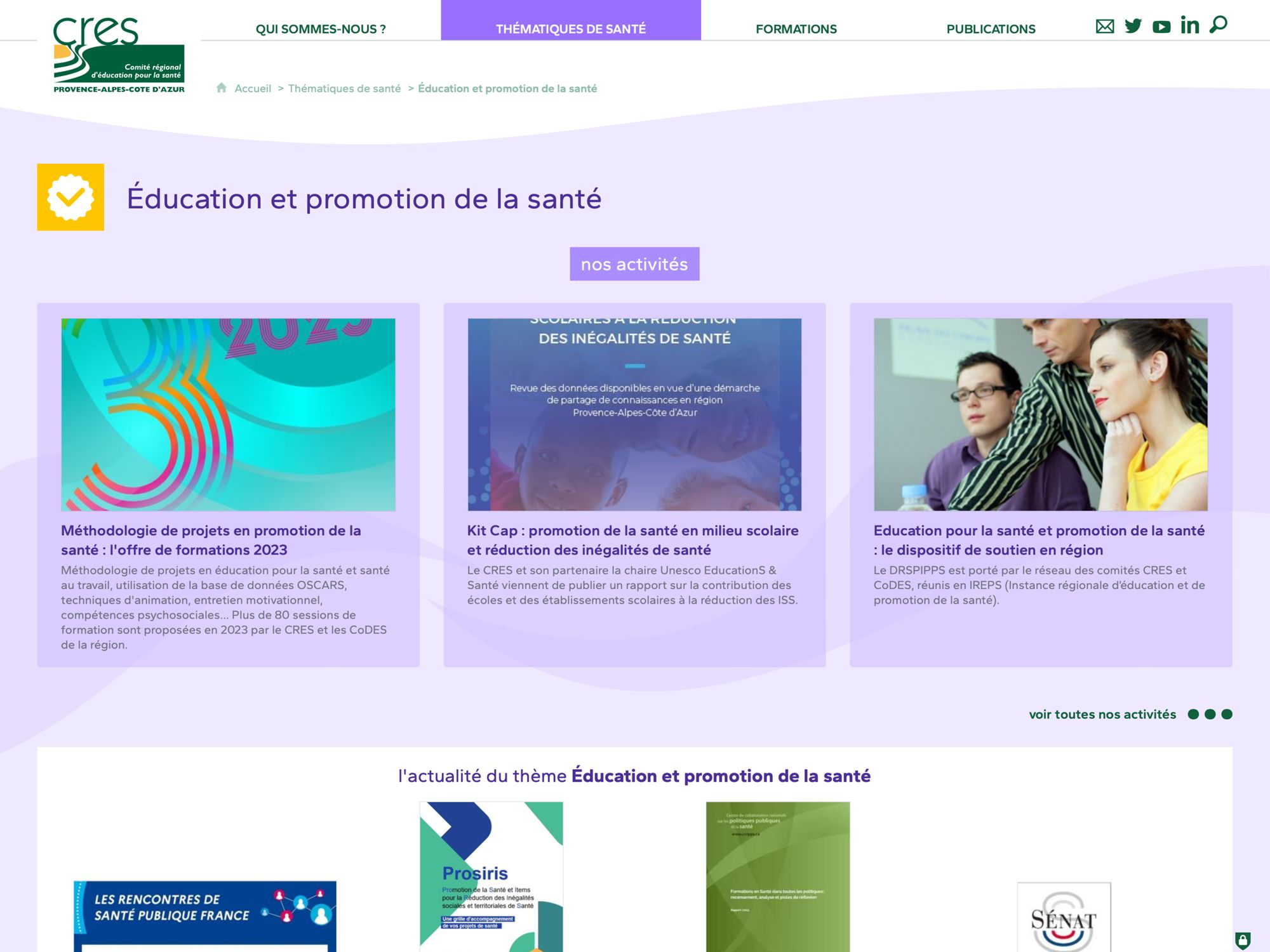 Le site du CRES présente une veille documentaire à tous les professionnels du sanitaire, du social et de l’éducation de la région. Il agit également en tant que formateur et conseiller en méthodologie.