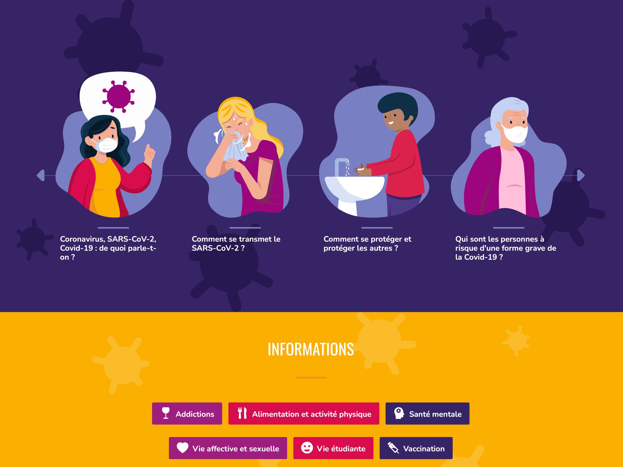 - une foire aux questions sur les questions les plus courantes que peuvent se poser les jeunes : comment se protéger et protéger les autres ? quand réaliser un test ? pendant combien de temps est-on contagieux ? comment réagir face à l'info ? etc.