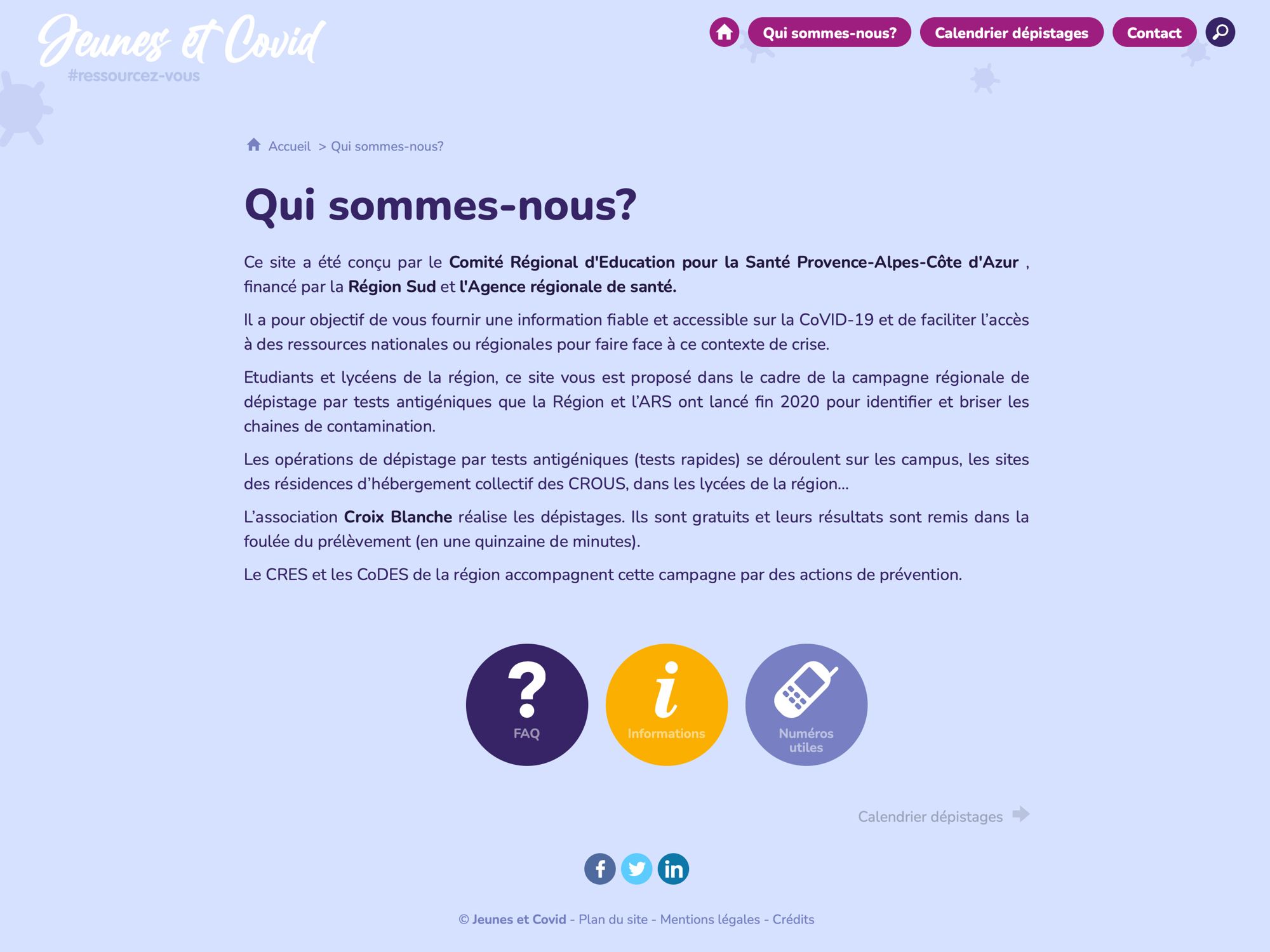 Ce site a été conçu pour accompagner la campagne régionale de dépistage par tests antigéniques lancée fin 2020 par la Région et l'ARS pour identifier et briser les chaines de contamination.