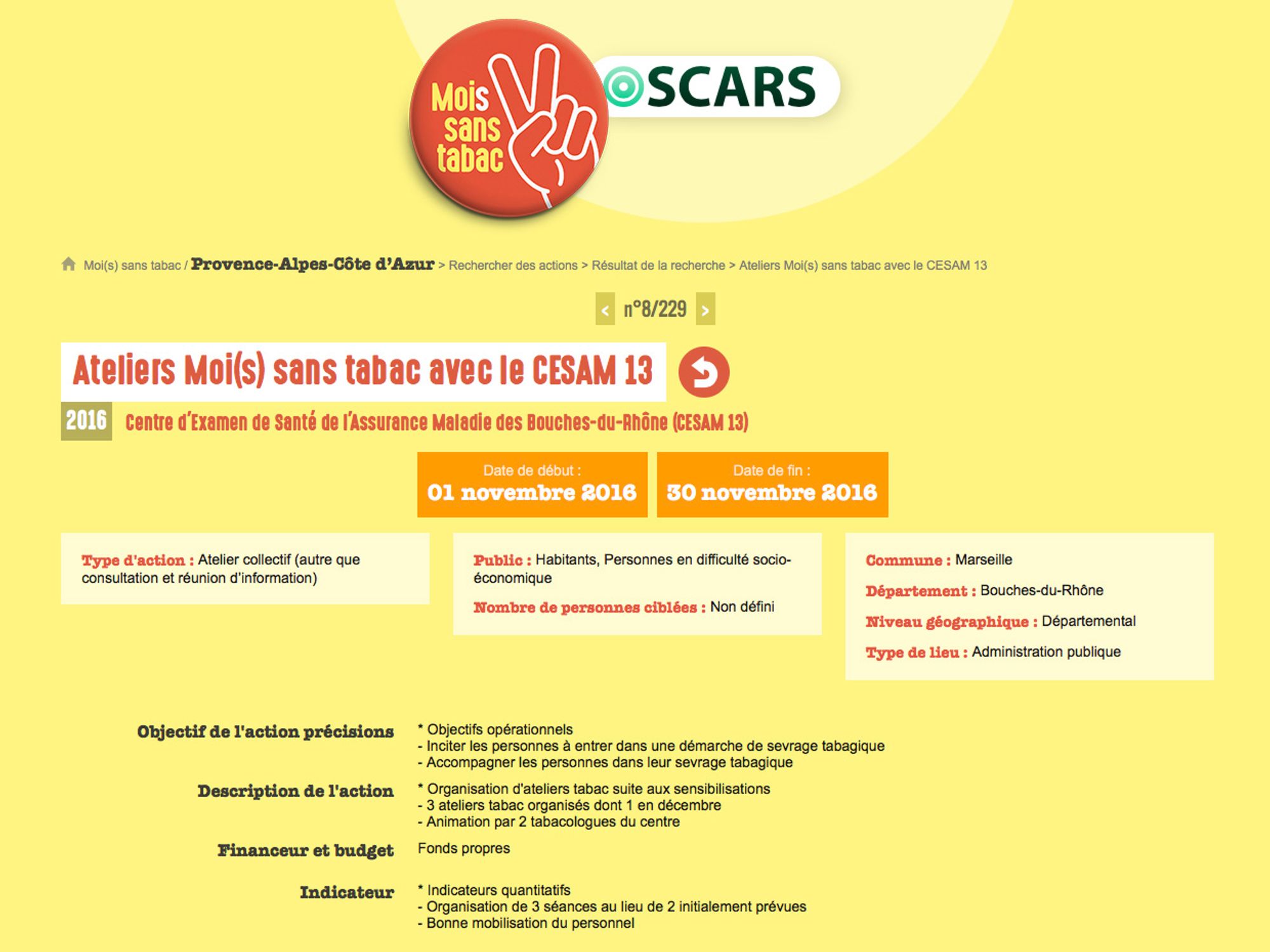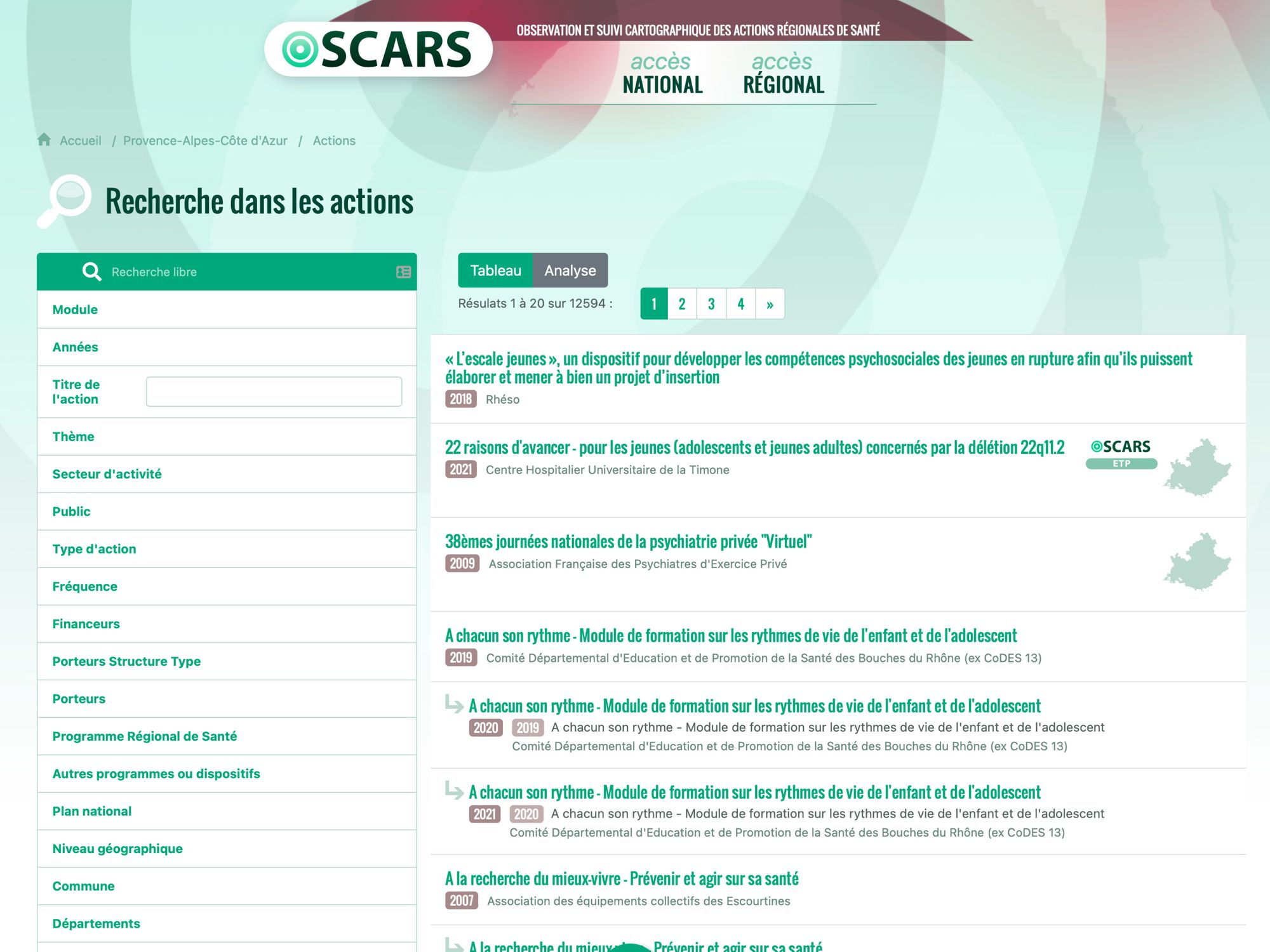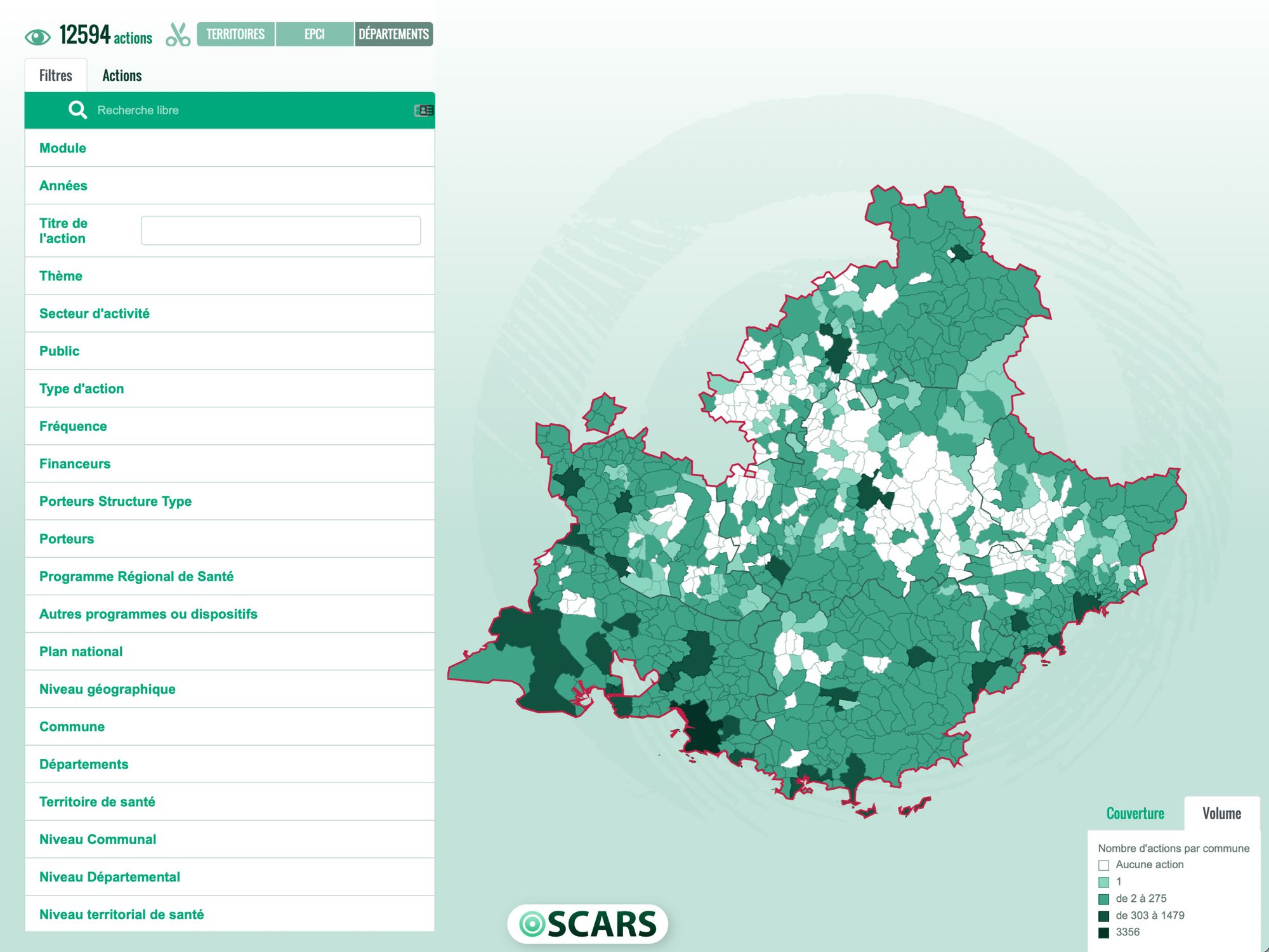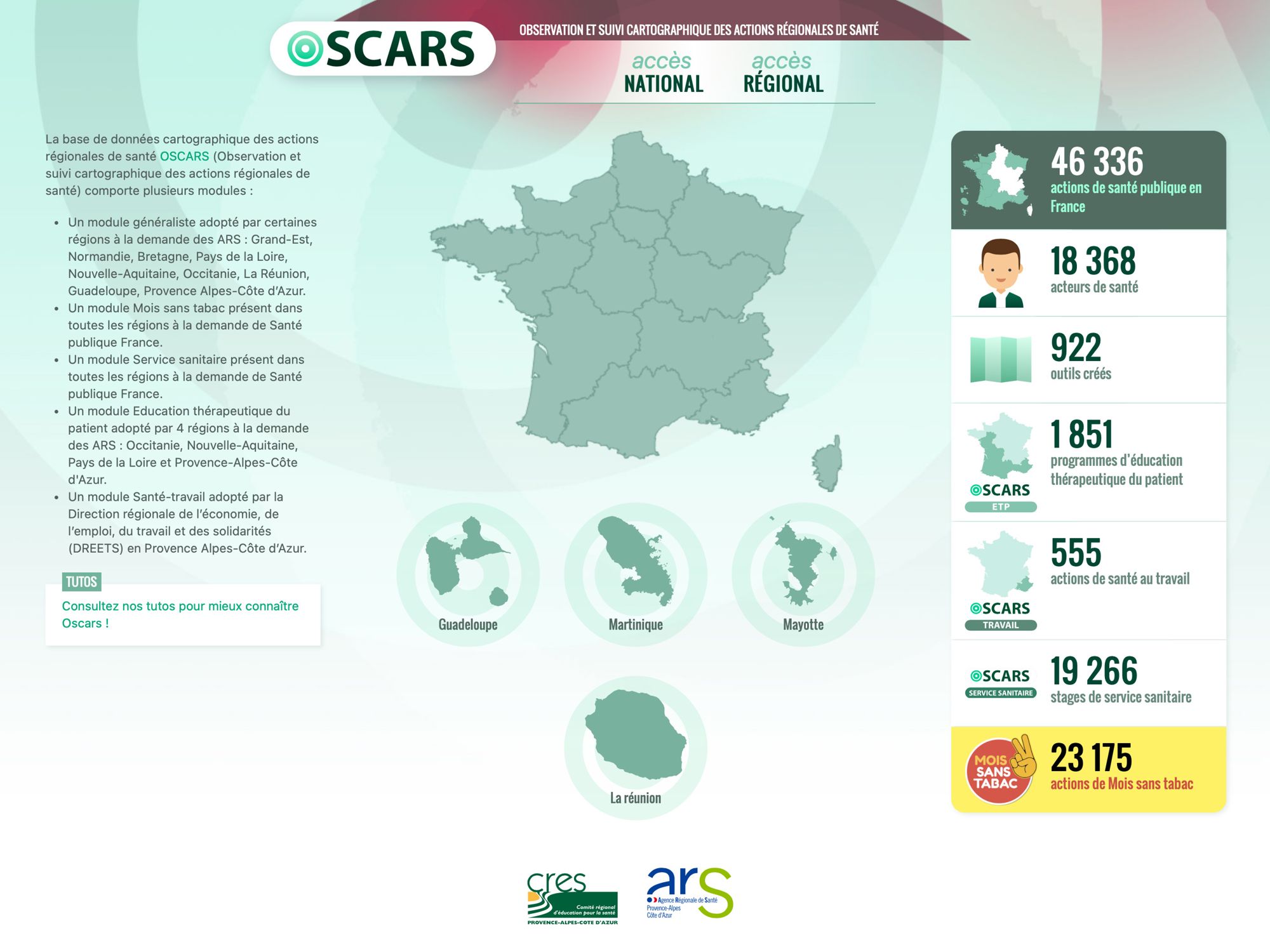 OSCARS est un outil cartographique des actions régionales de santé. Il permet de donner de la visibilité à l’activité menée dans le champ de la santé publique.